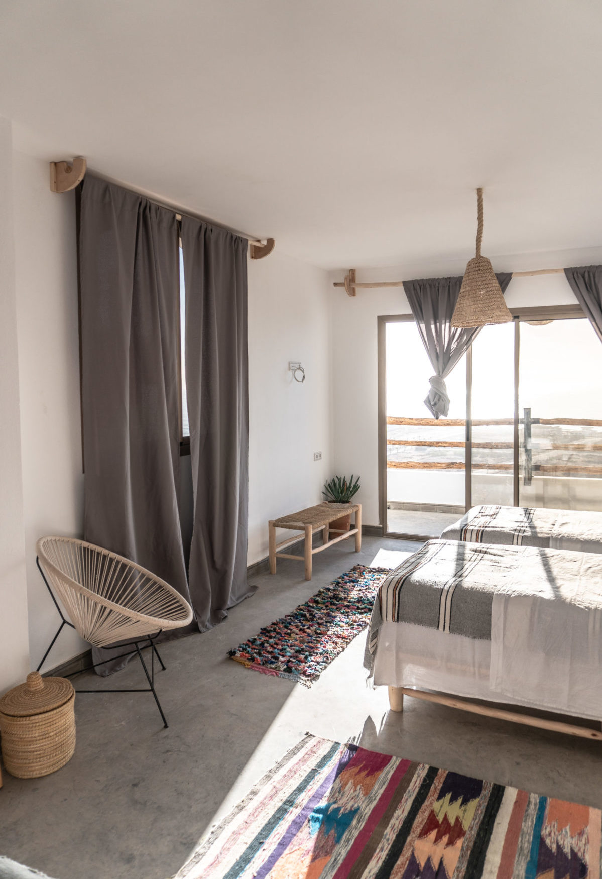 Our yoga & surf villa will be our living ashram. The villa was opening in October 2019 in Tamraght next to Taghazout and provides a calm and warm space to be and to unfold. We have a lovely rooftop with ocean view as well as an indoor yoga shala for our lessons. We will be nourished by vegetarian meals (breakfast brunch, snacks and dinner). Tea and water will be available the whole day at the villa. You will be accomodated in single or shared room according the room category which you choose.